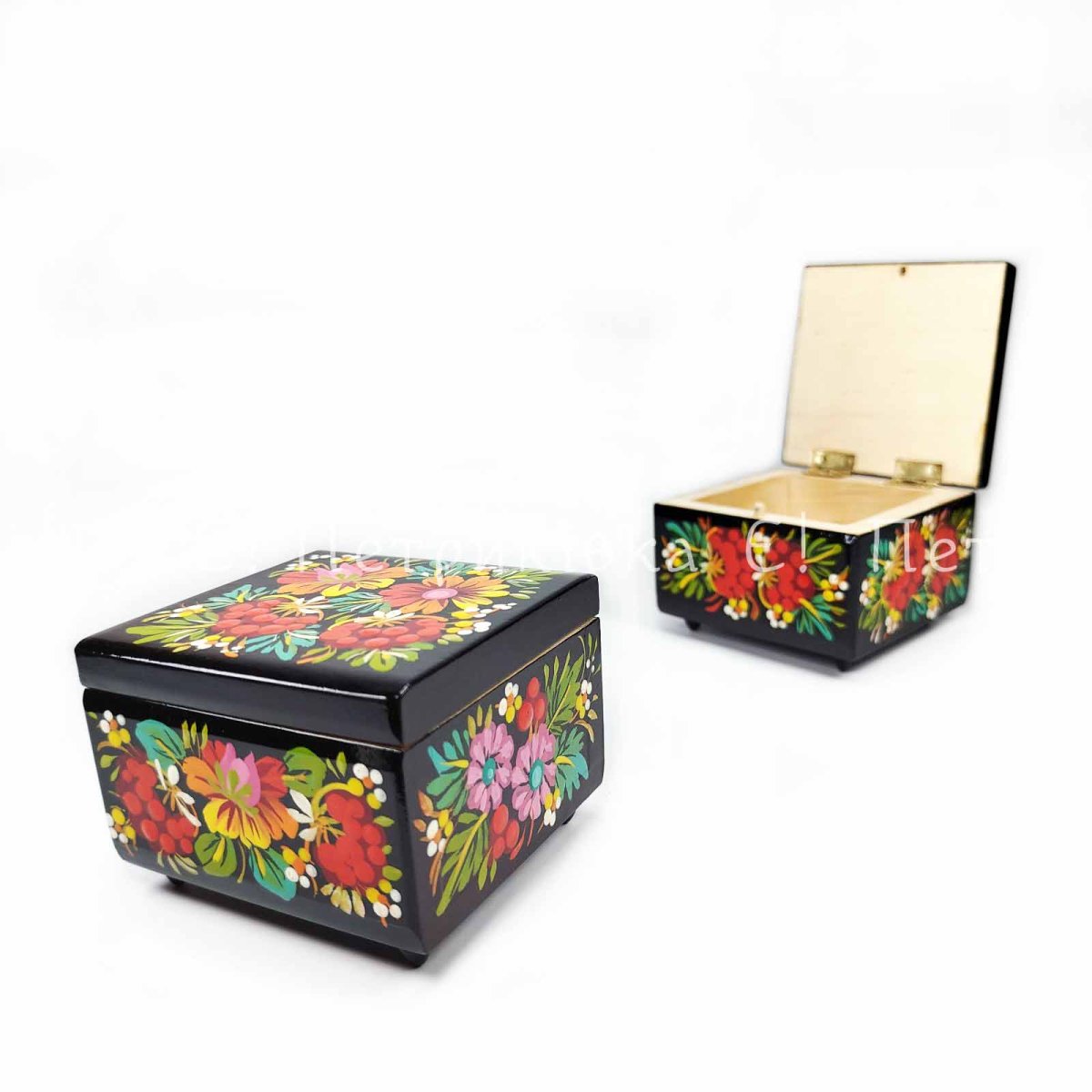 Шкатулка розписана гуашшю, вкрита високоякісним глянсевим лаком.