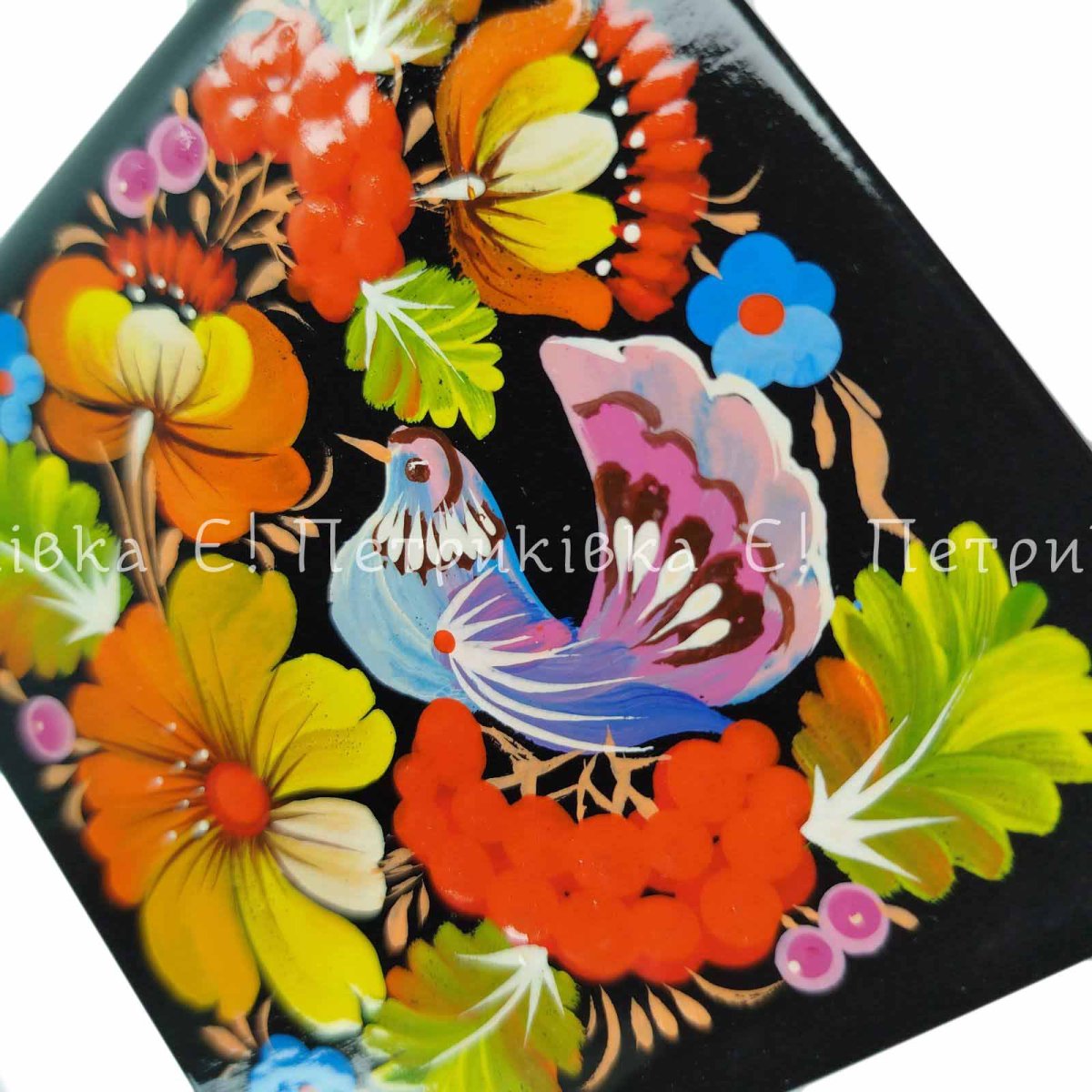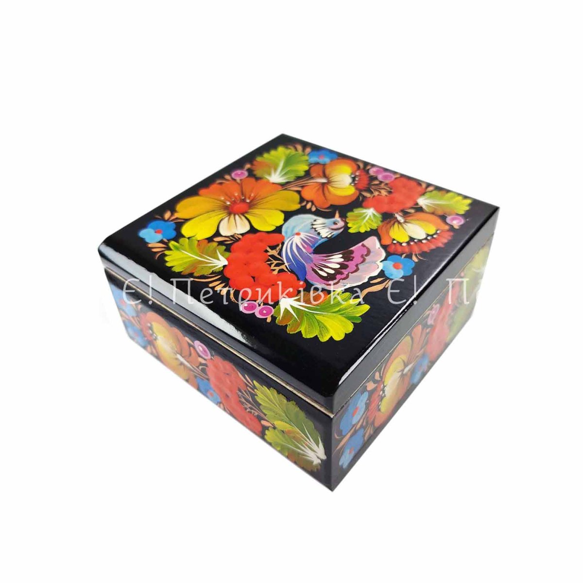 Скринька квадратна (10х10 см) з Петриківським розписом "Пташка на гілці"