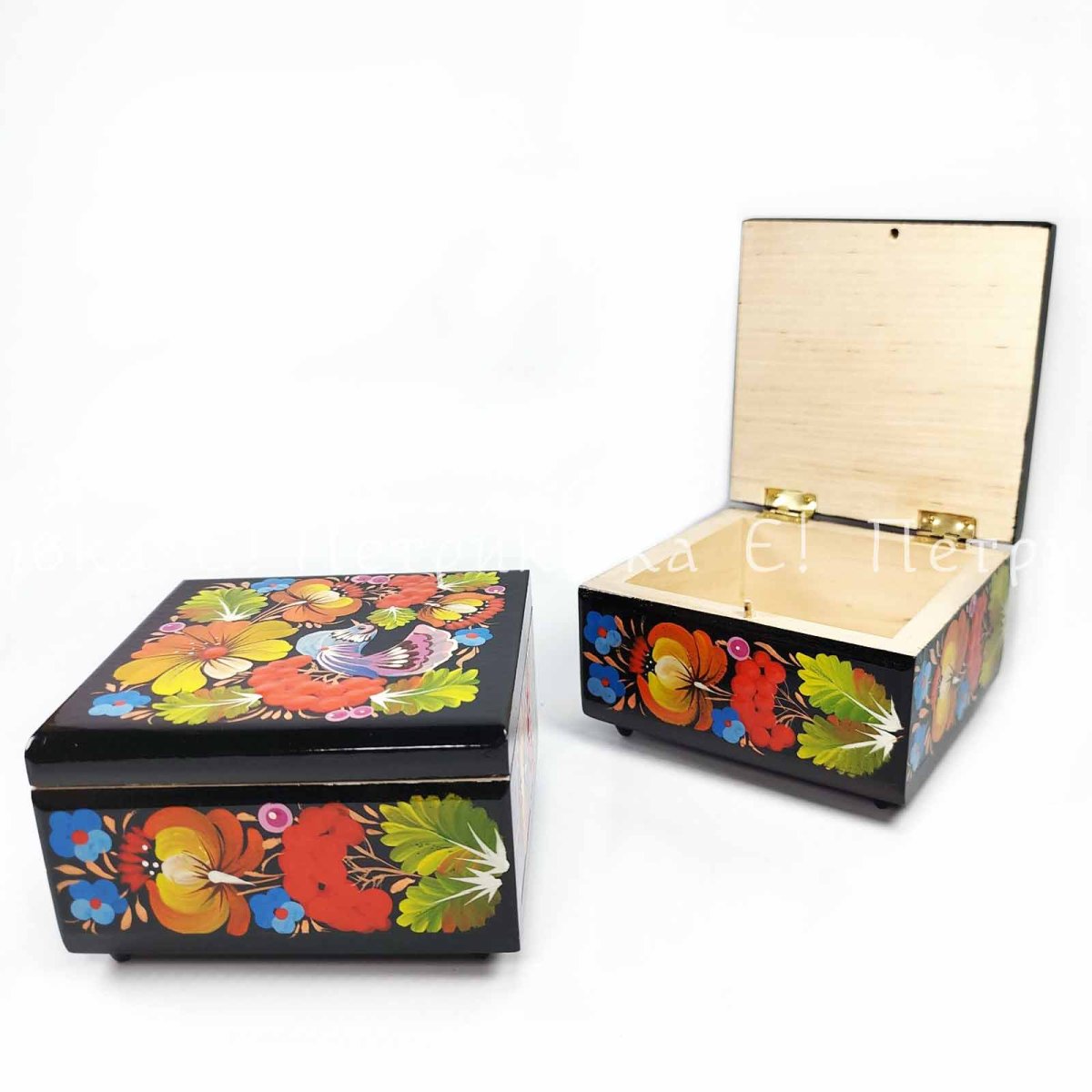 Шкатулка розписана гуашшю, вкрита високоякісним глянсевим лаком.