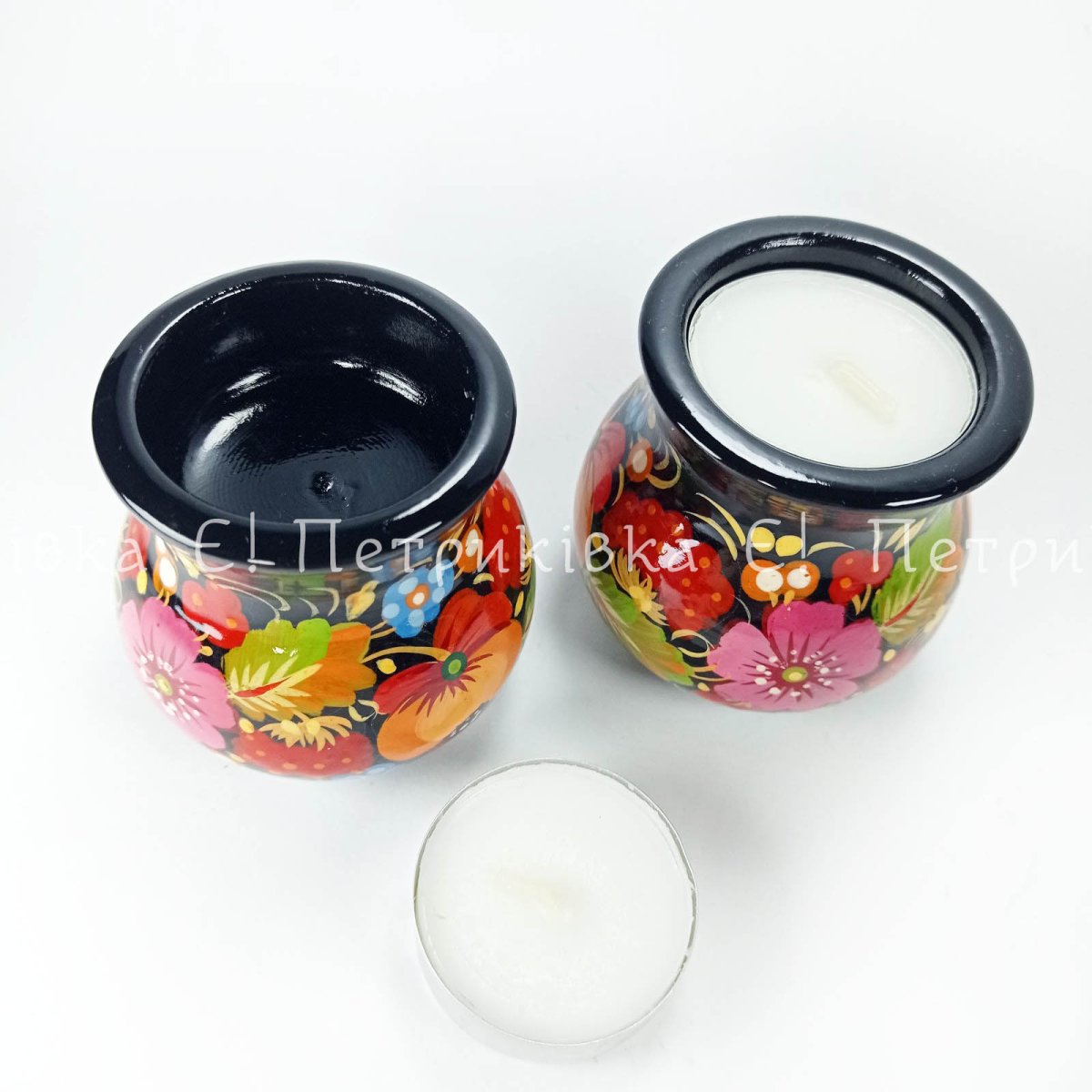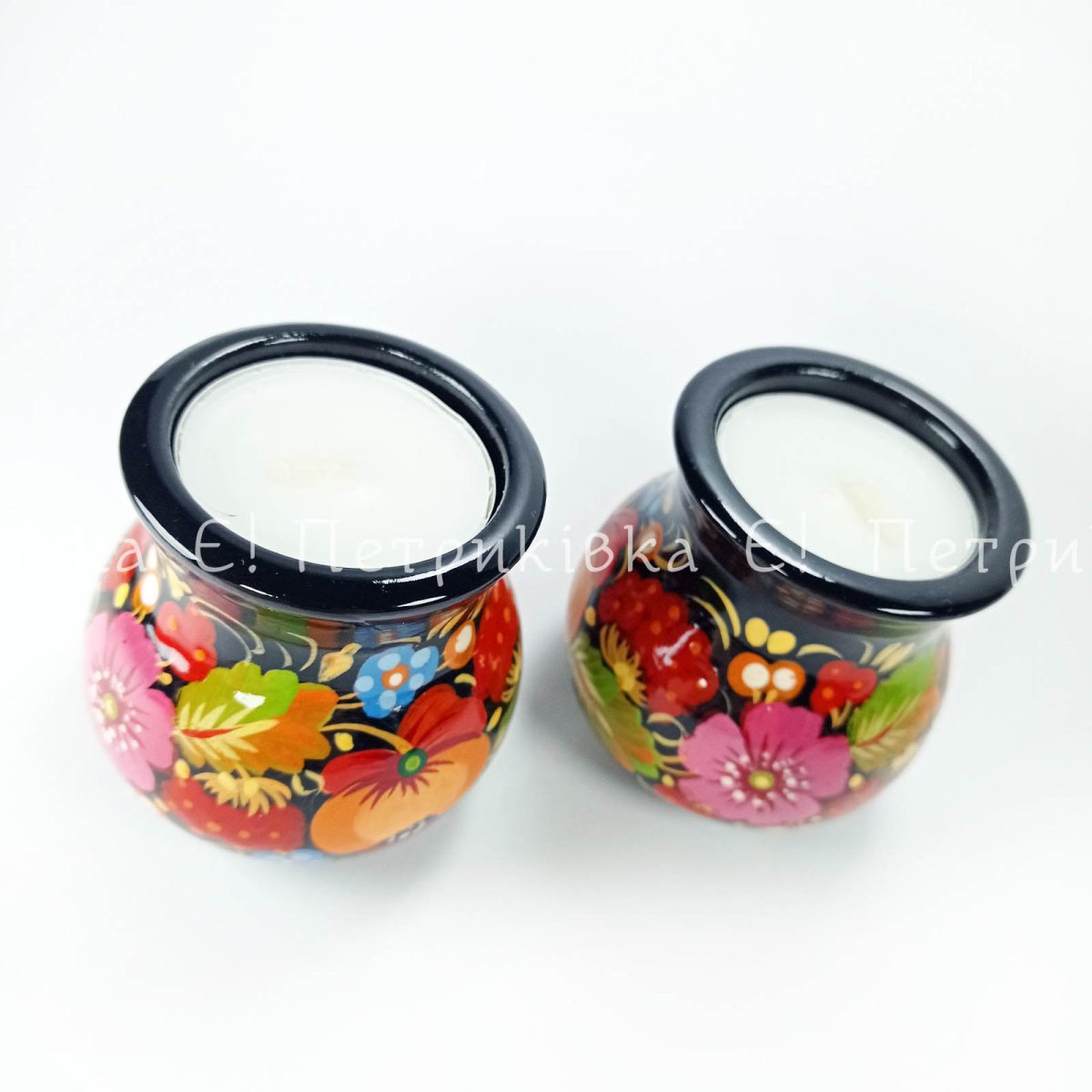 Свічник дерев'яний з підлаковим Петриківським розписом.