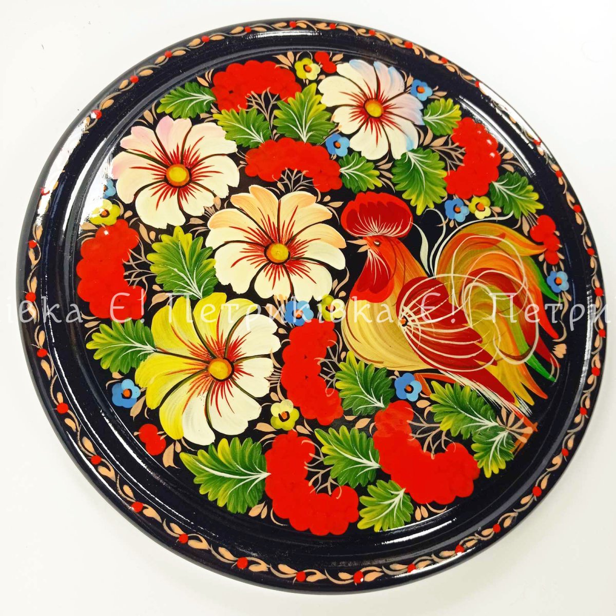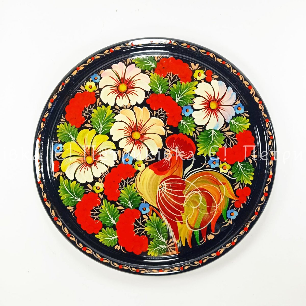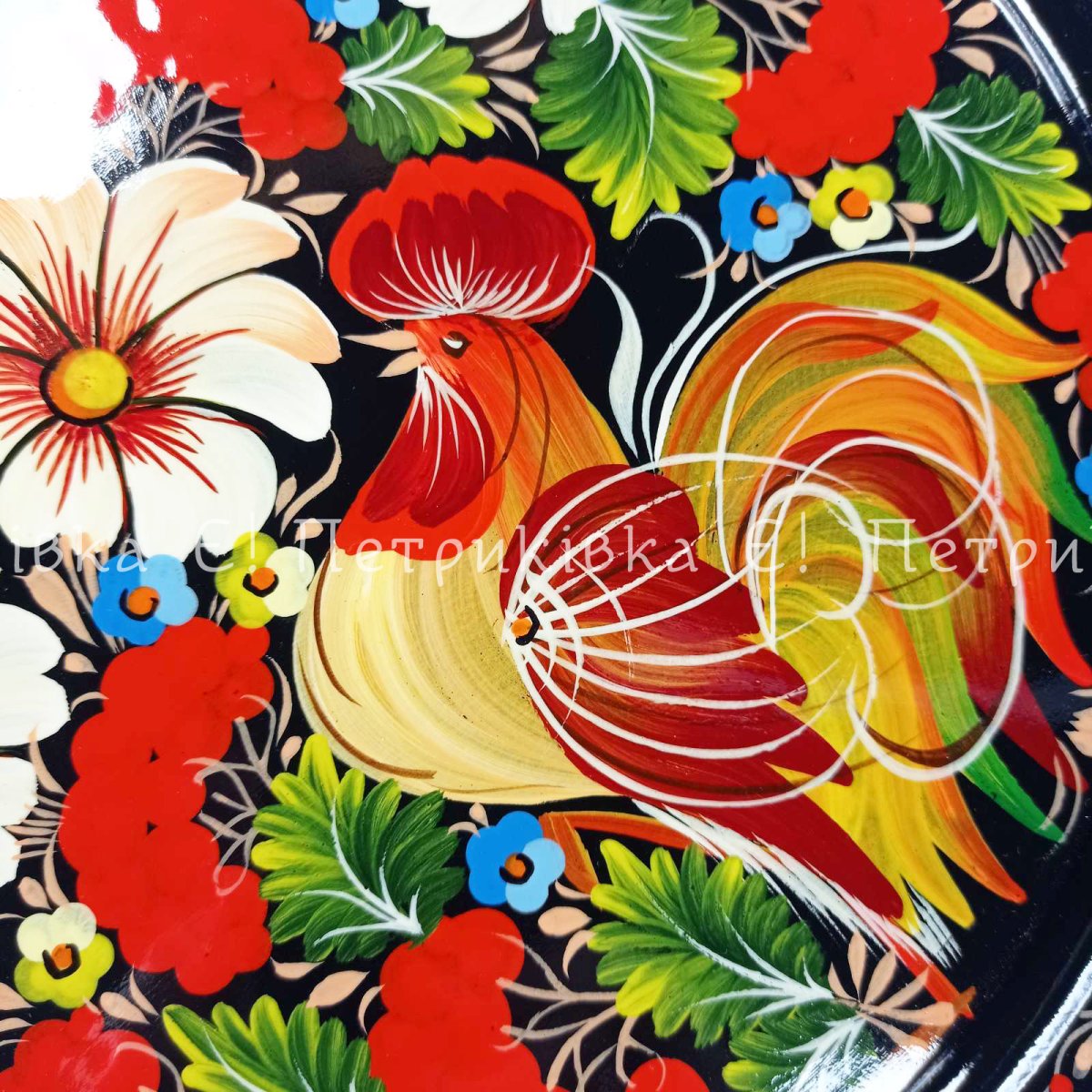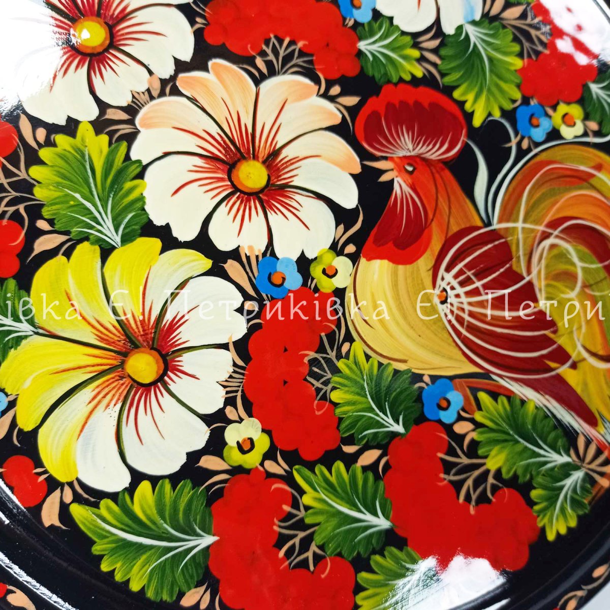 Панно петриківський розпис 25 см "Півник у білих квітах"