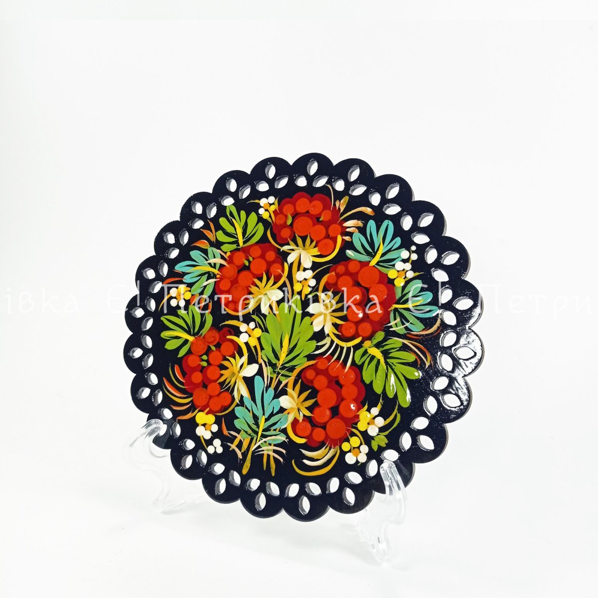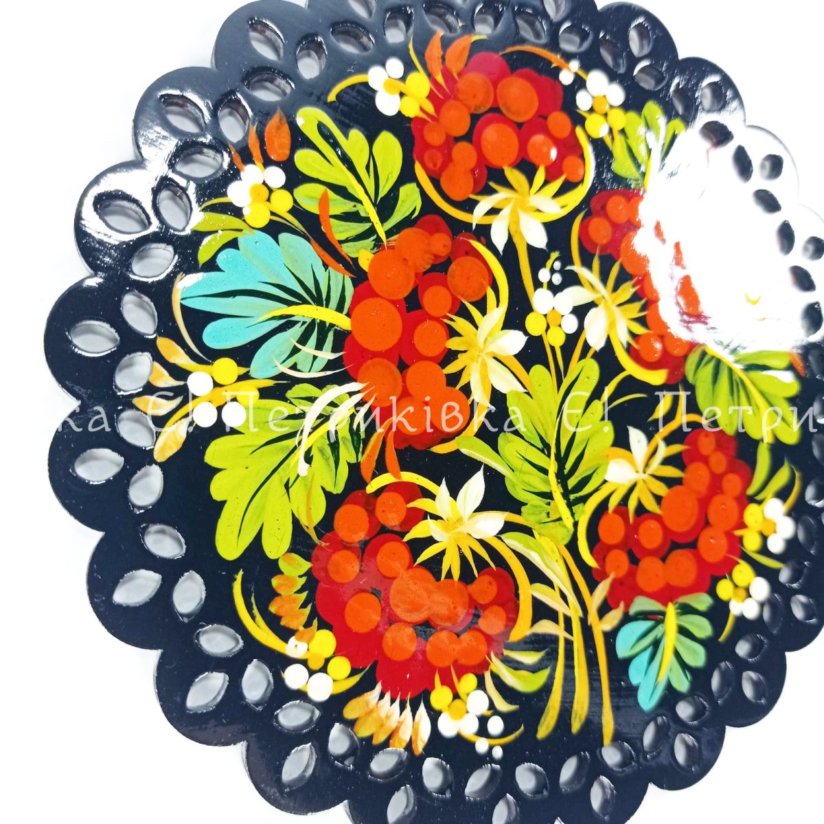 Панно настільне (Ø13 см) з Петриківським розписом "Кущ калини"