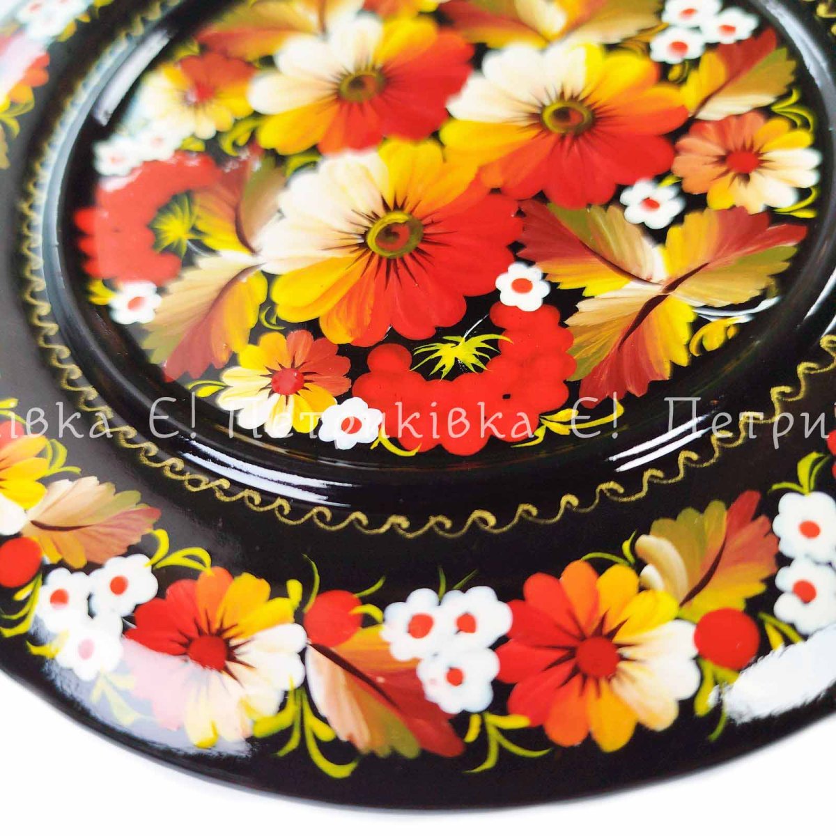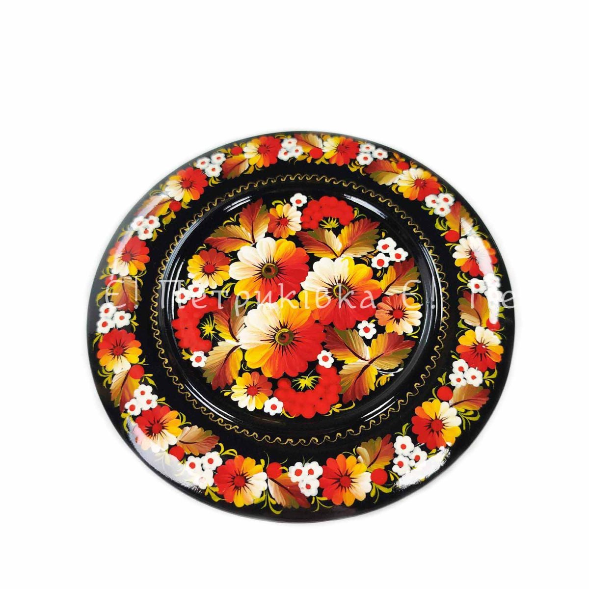 Тарілочка (Ø15 см) з Петриківським розписом "Золотий орнамент"