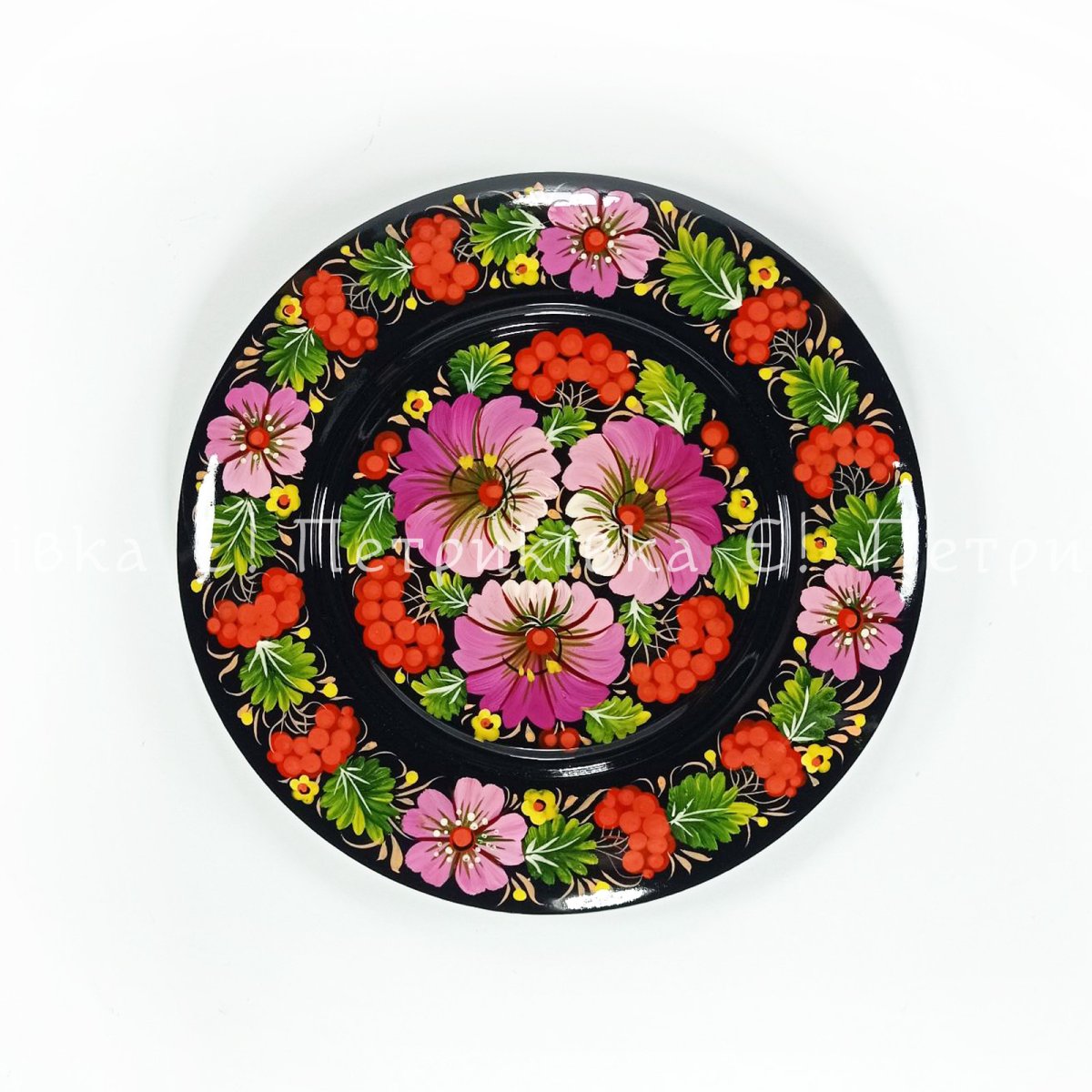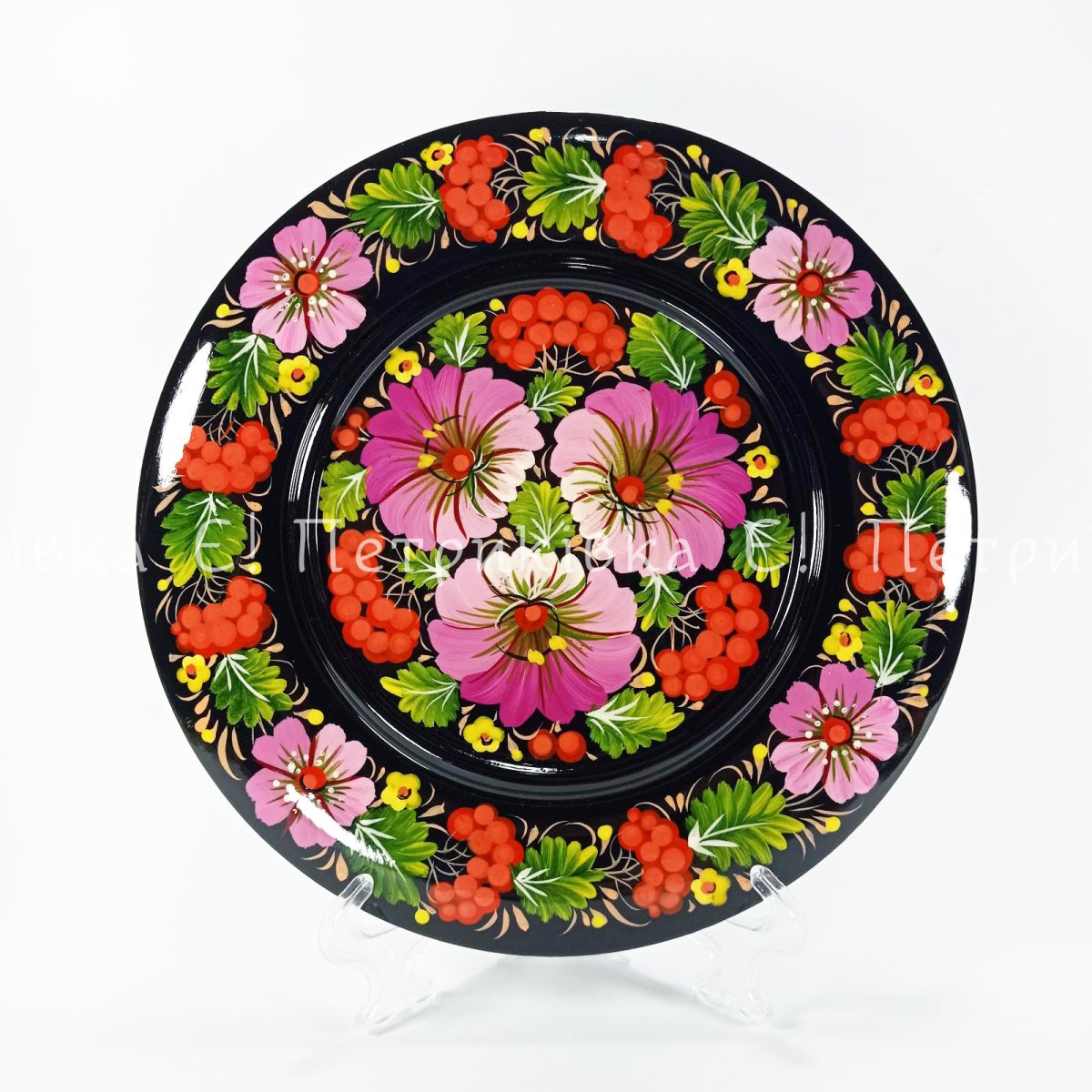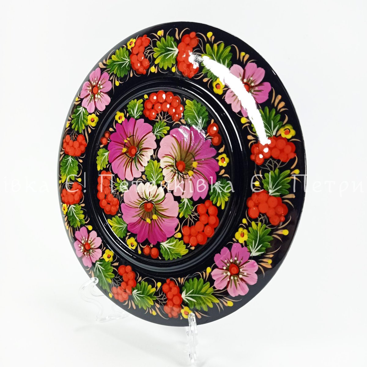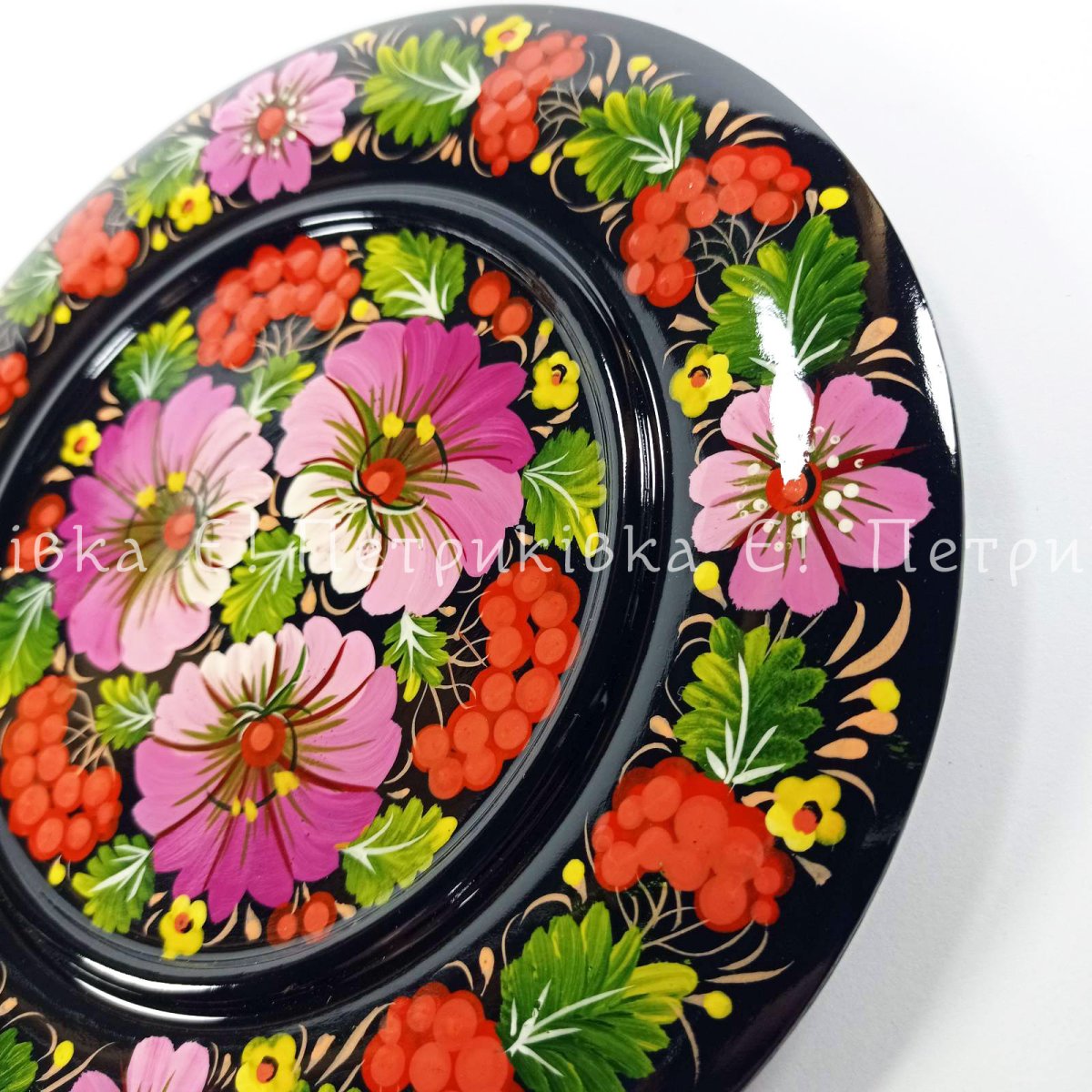 Тарілка з Петриківським розписом 20 см "Букет з рожевих квітів"