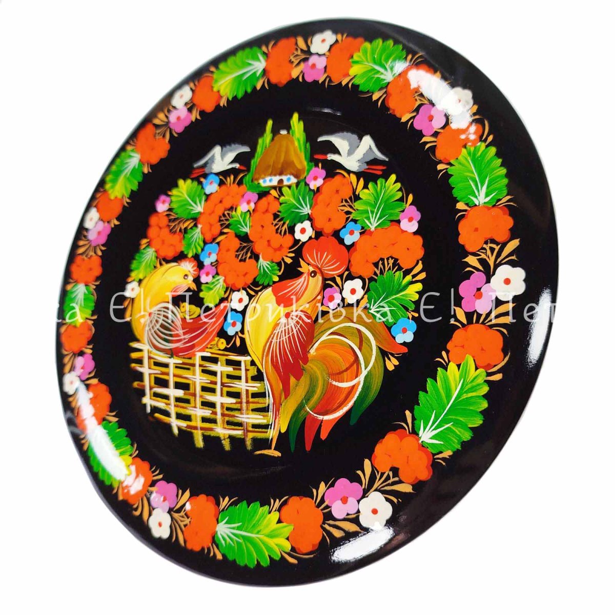 Тарілка з Петриківським розписом 22 см "Українське село"