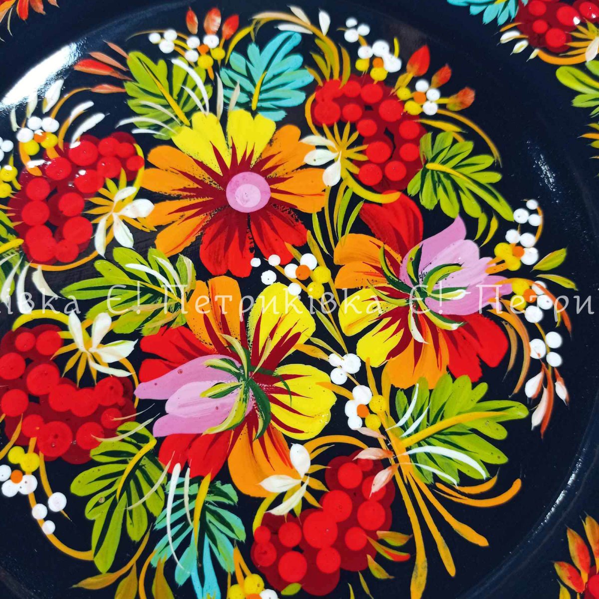 Тарілка з Петриківським розписом 22 см "Букет"