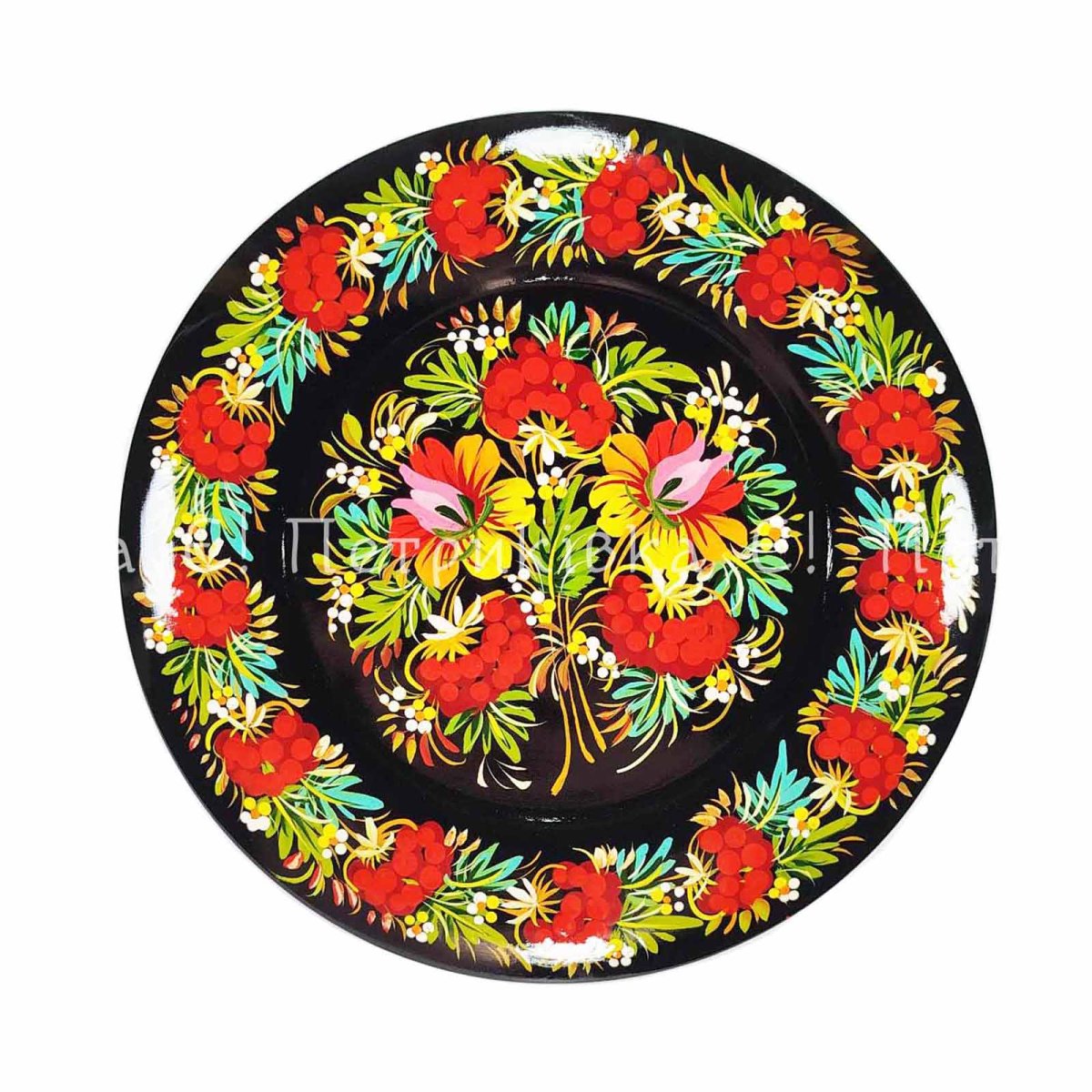 Тарілка з Петриківським розписом 22 см "Калина з квітами"