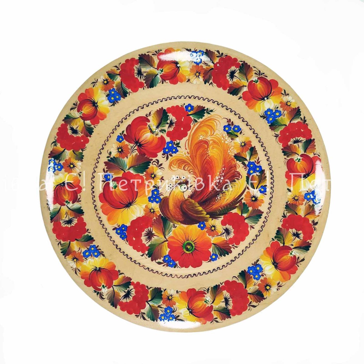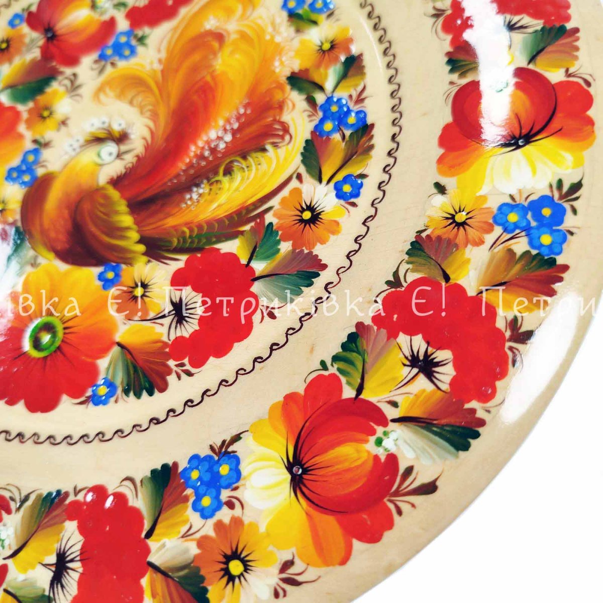 Тарілка з Петриківським розписом 22 см "Жар-птиця у квітах 3" по дереву
