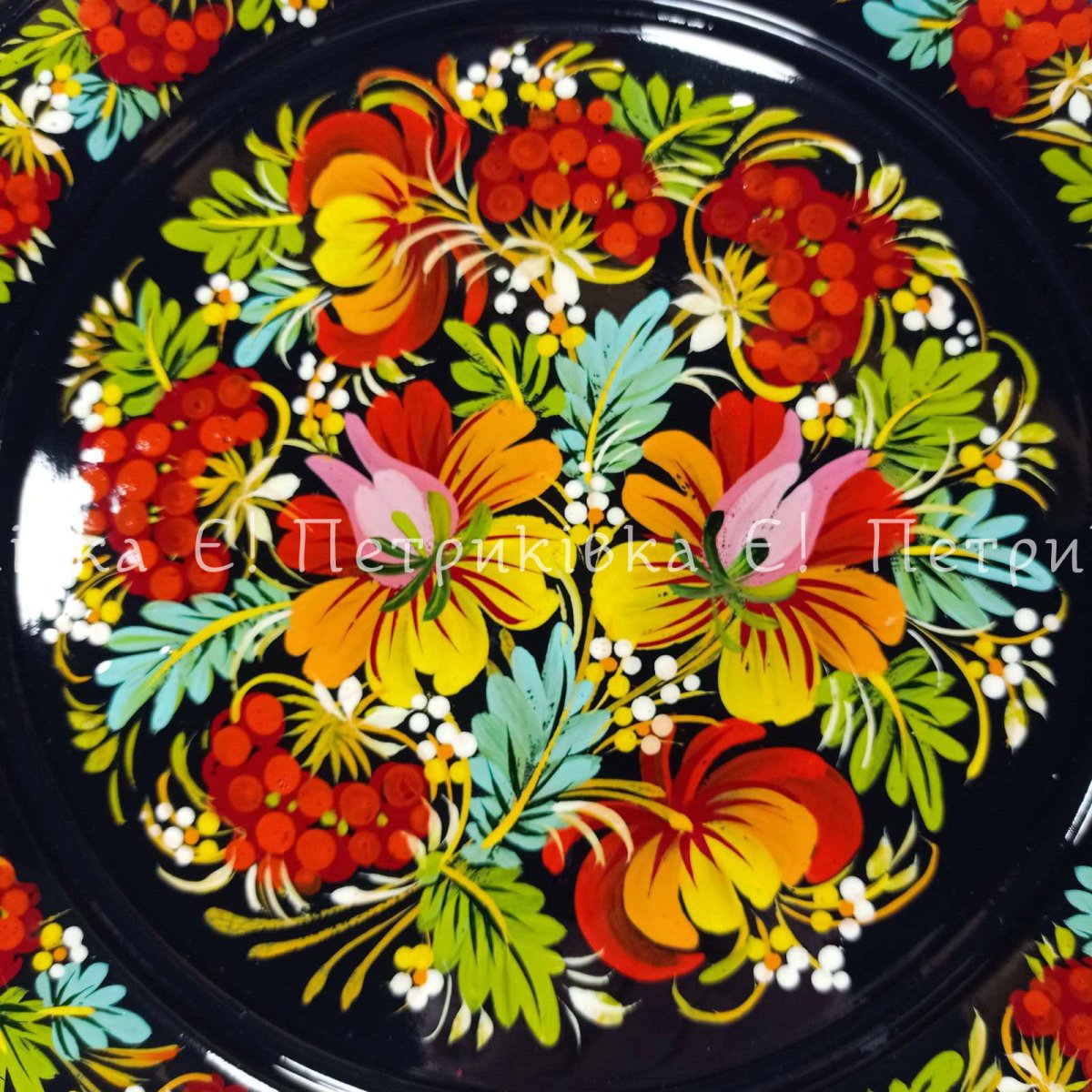 Тарілка з Петриківським розписом 25 см "Калина з квітами"