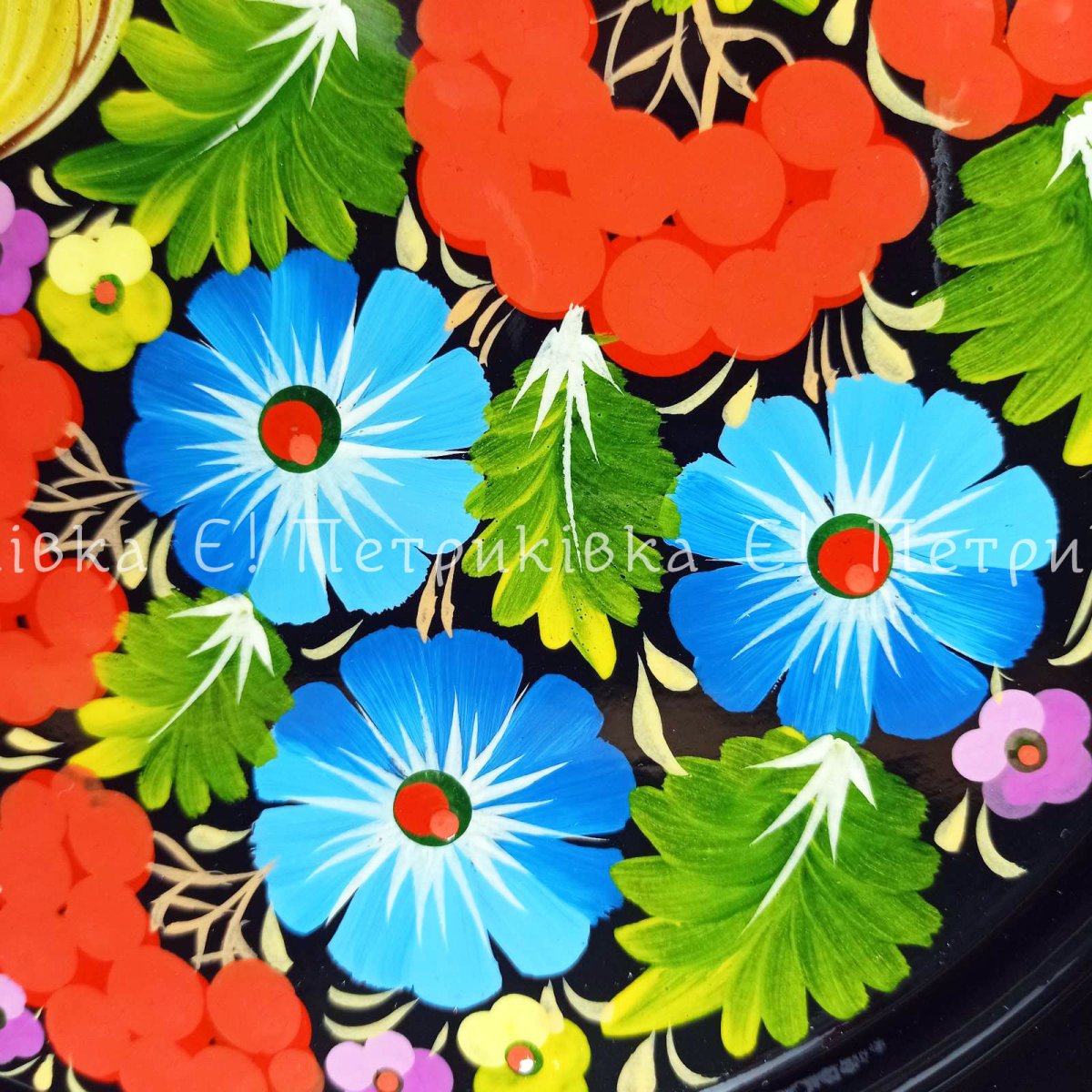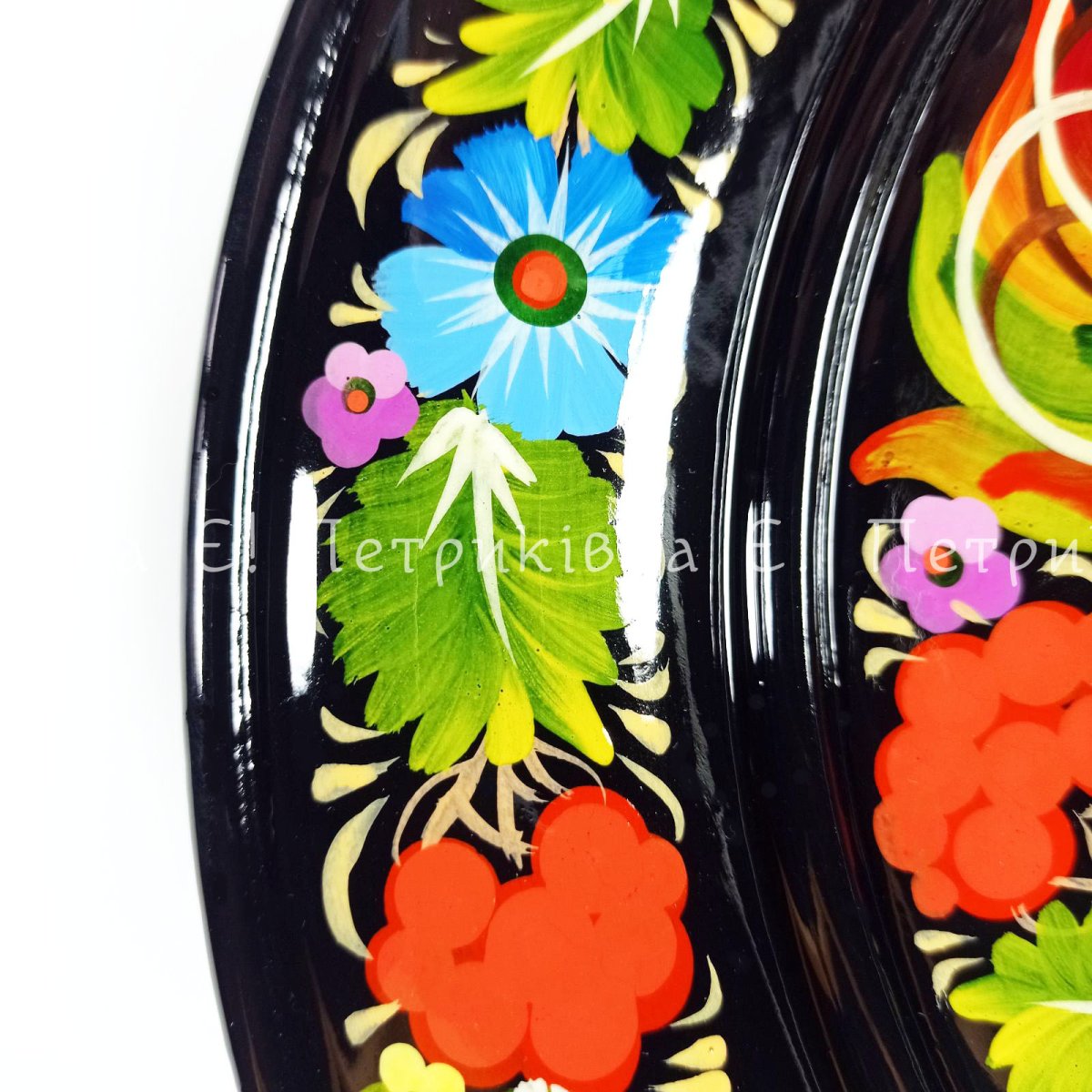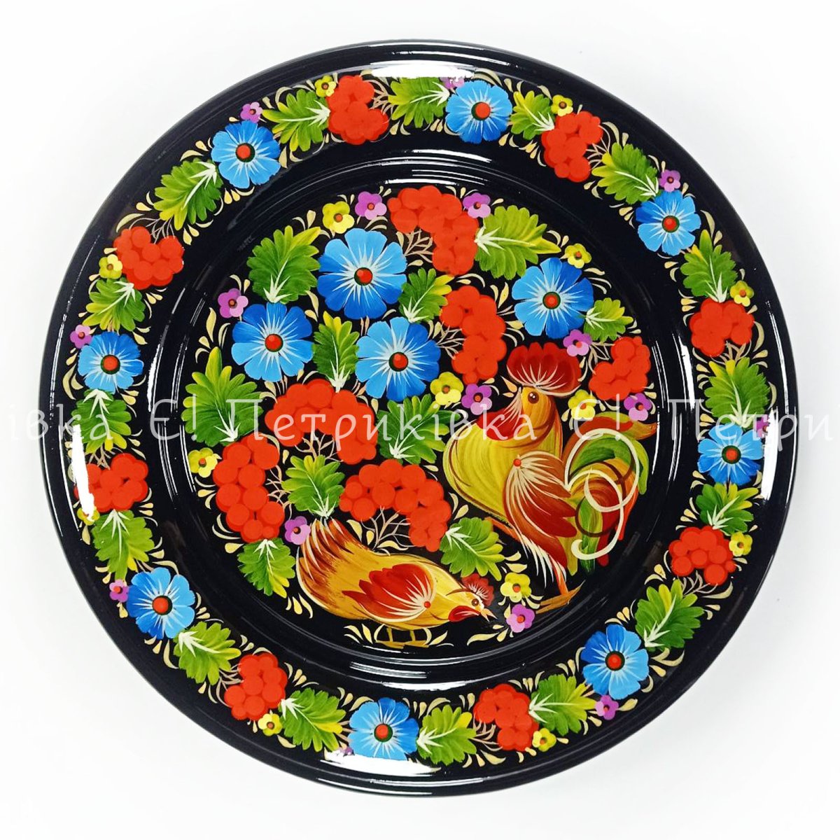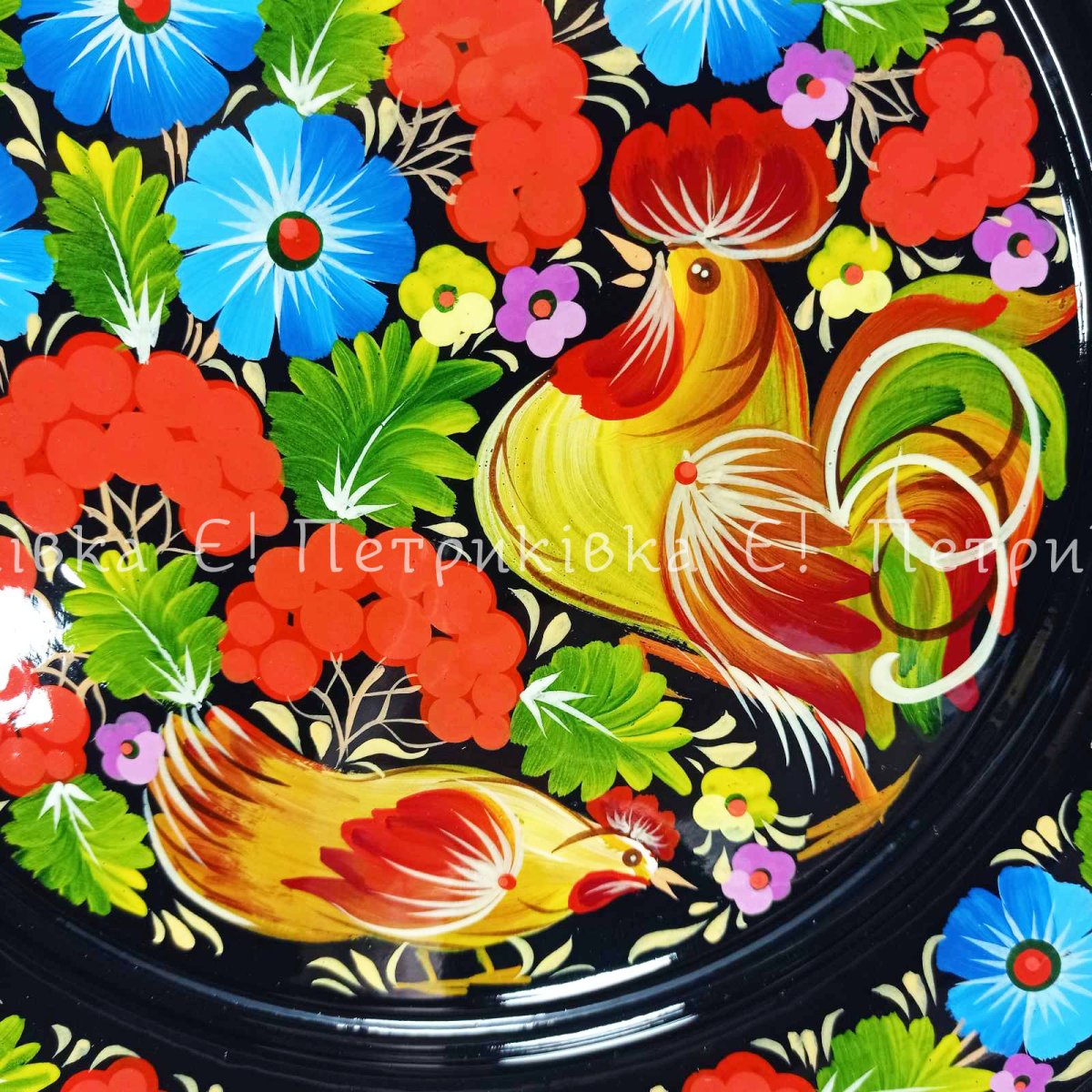 Тарілка з Петриківським розписом 30 см "Півник з куркою"