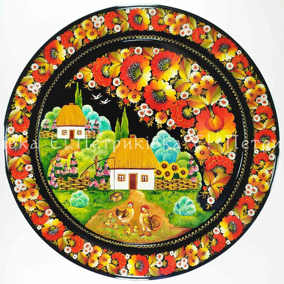 Тарілка (Ø40 см) з Петриківським розписом "Літо у селі"