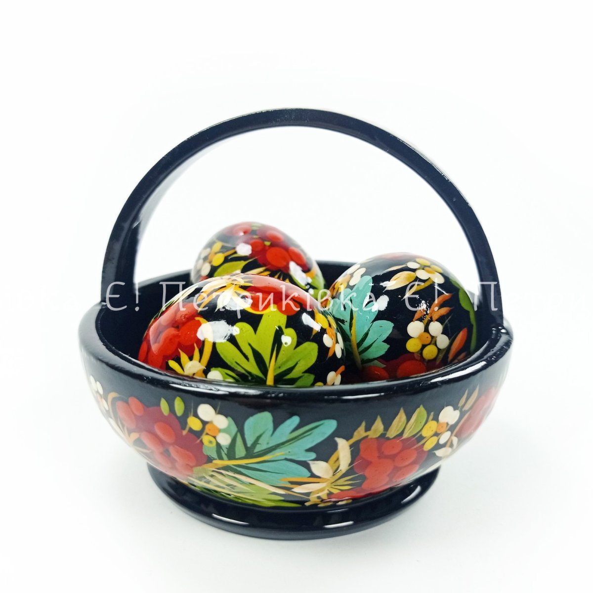 Кошик (9х8 см) з трьома писанками (Великодній) "Весь у калині"