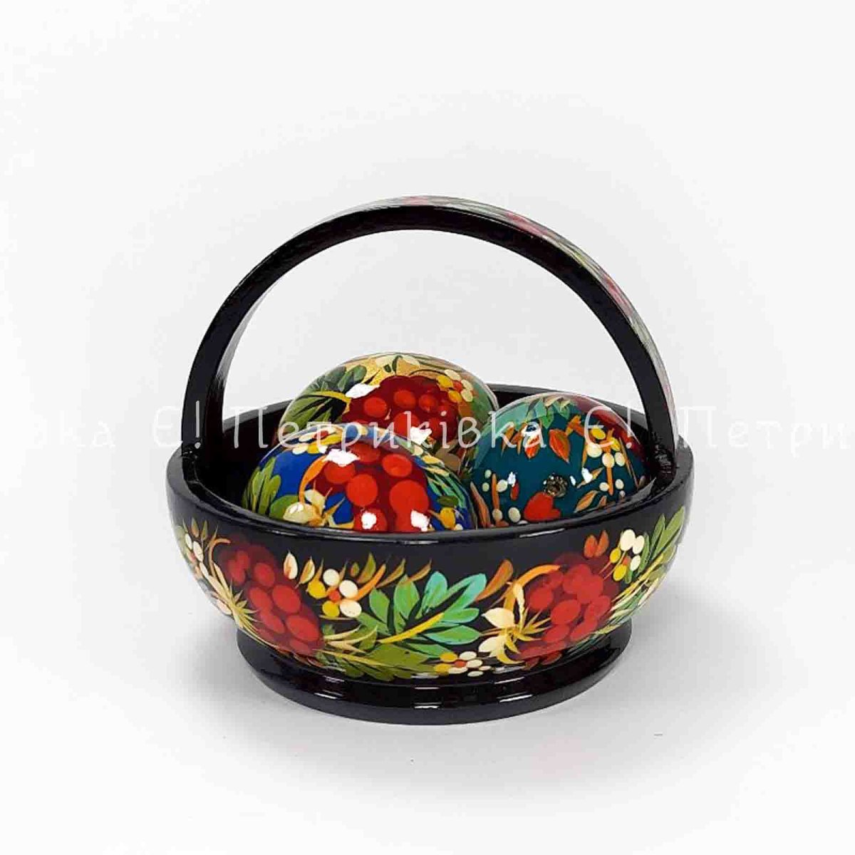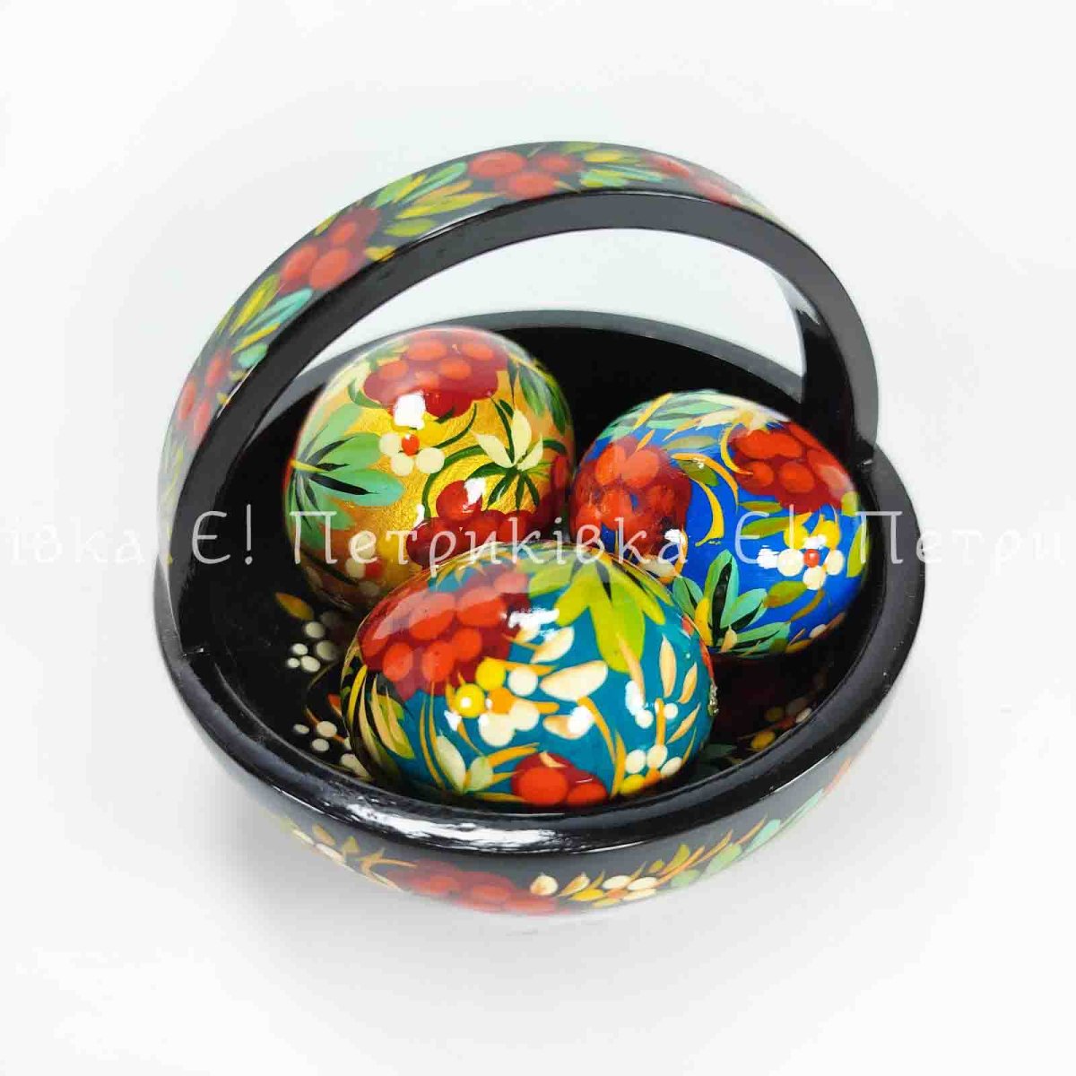 Кошик (9х8 см) з трьома різнокольоровими писанками (Великодній)