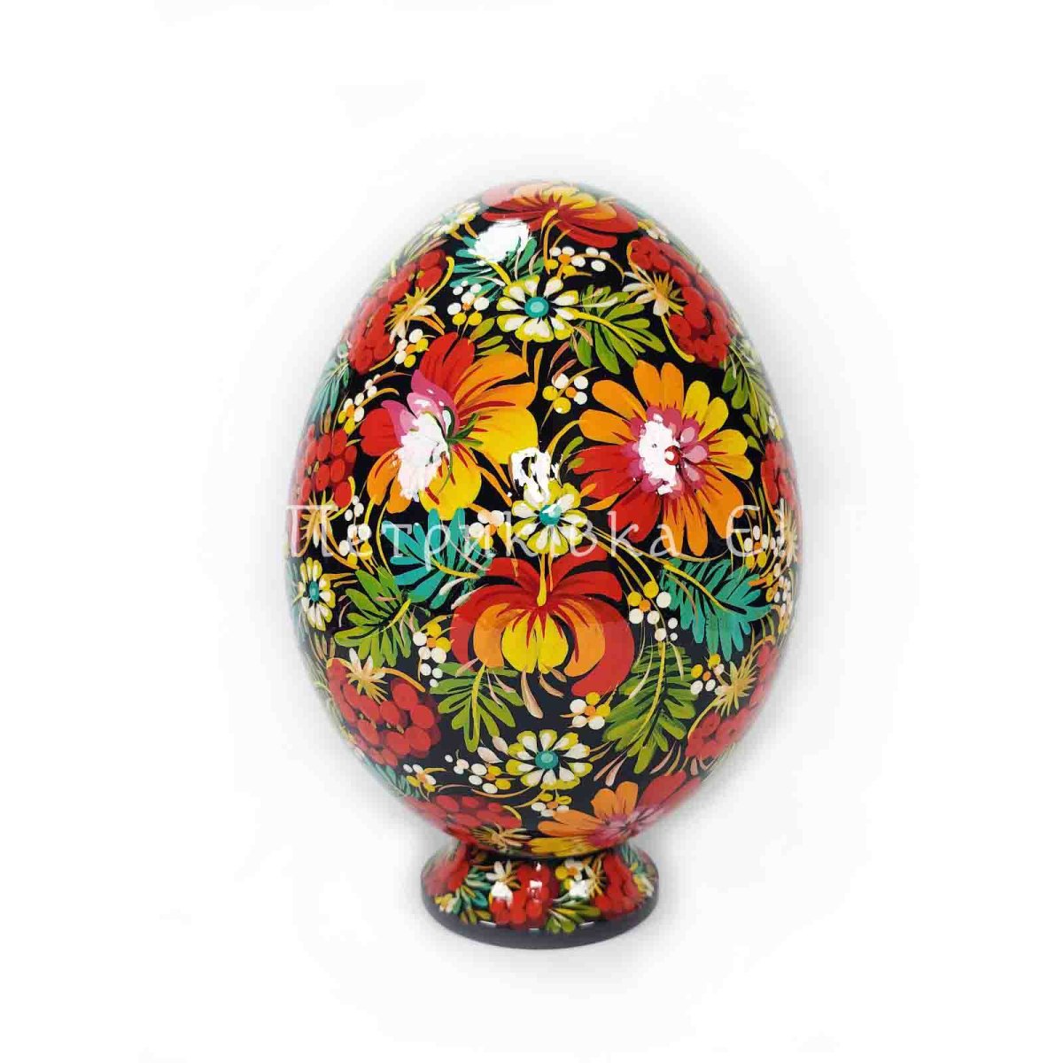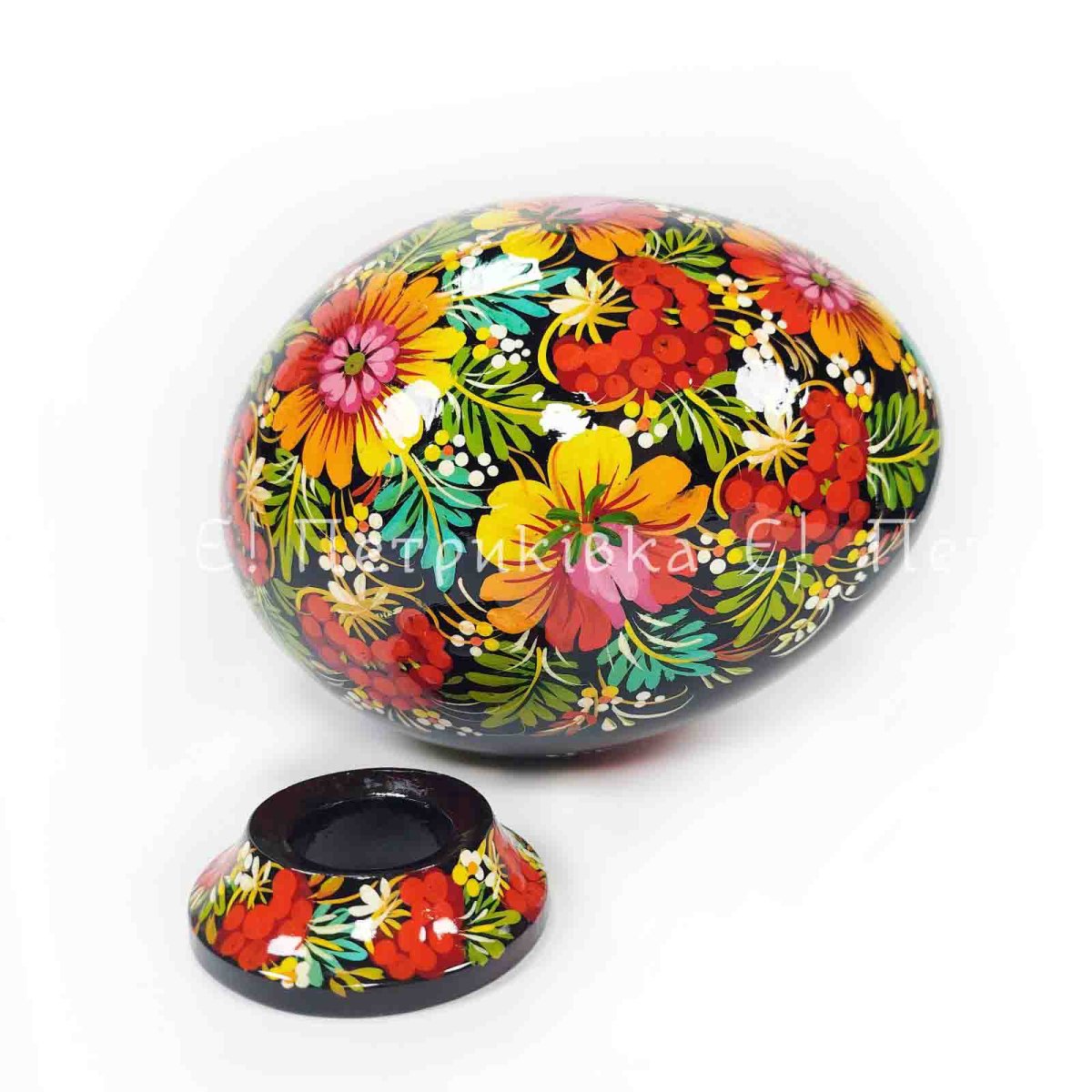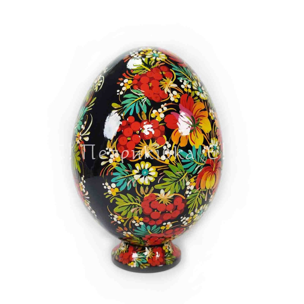 Яйце велике (висота 19 см) на підставці з Петриківським розписом