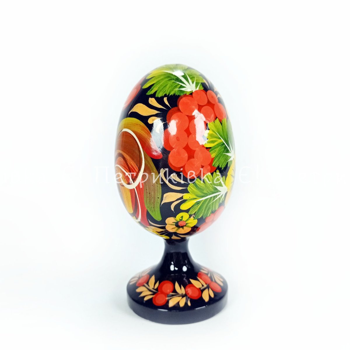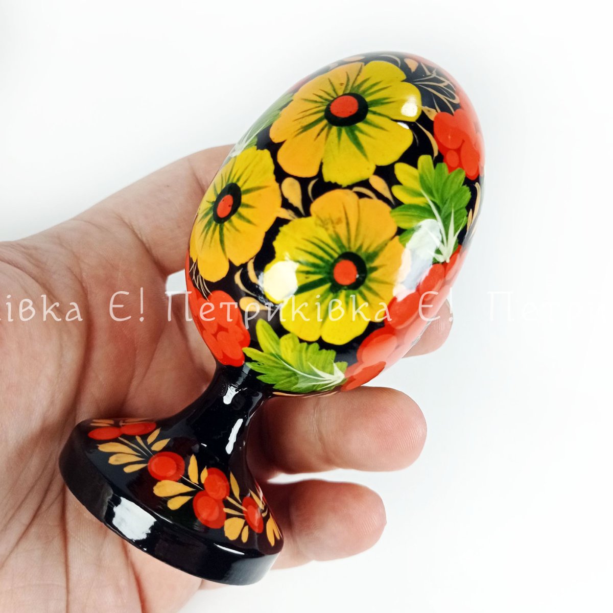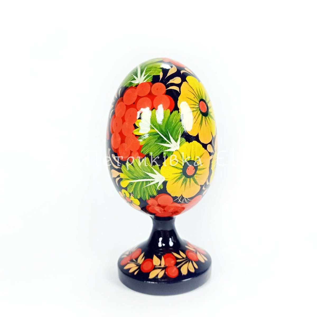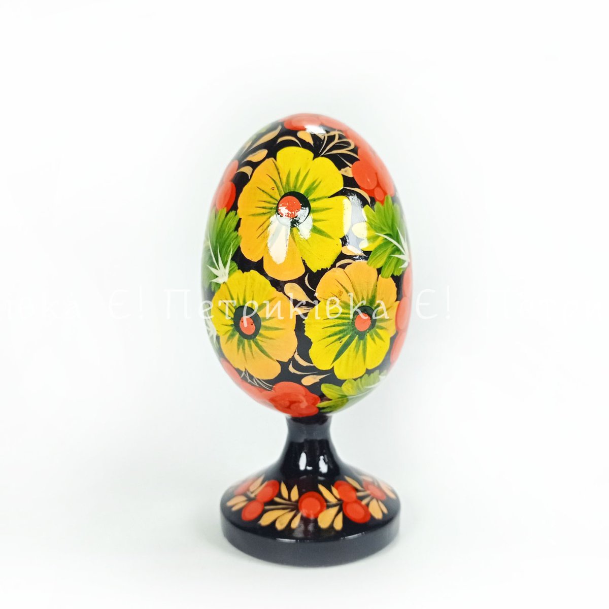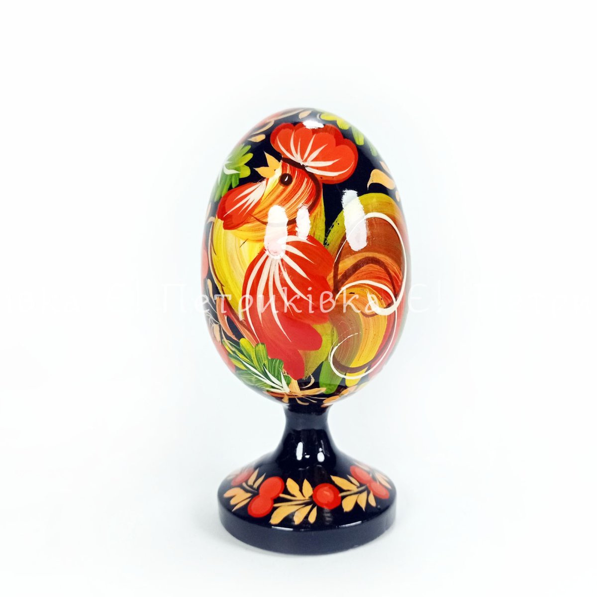 Яйце (висота 10 см) з Петриківським розписом на ніжці "Півник в помаранчевих квітах"