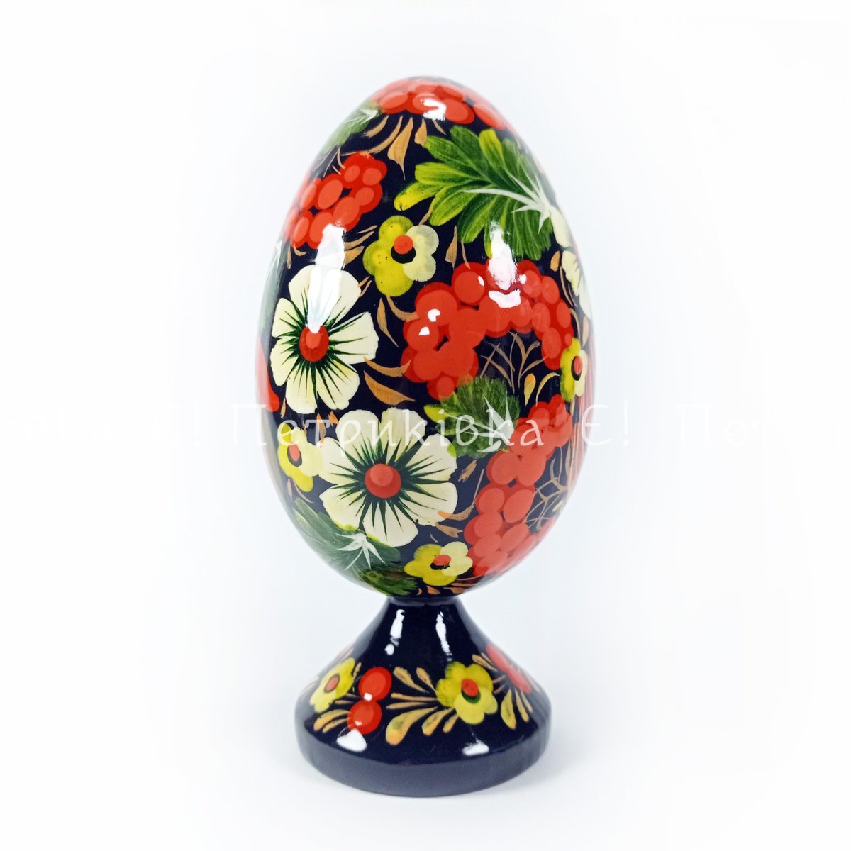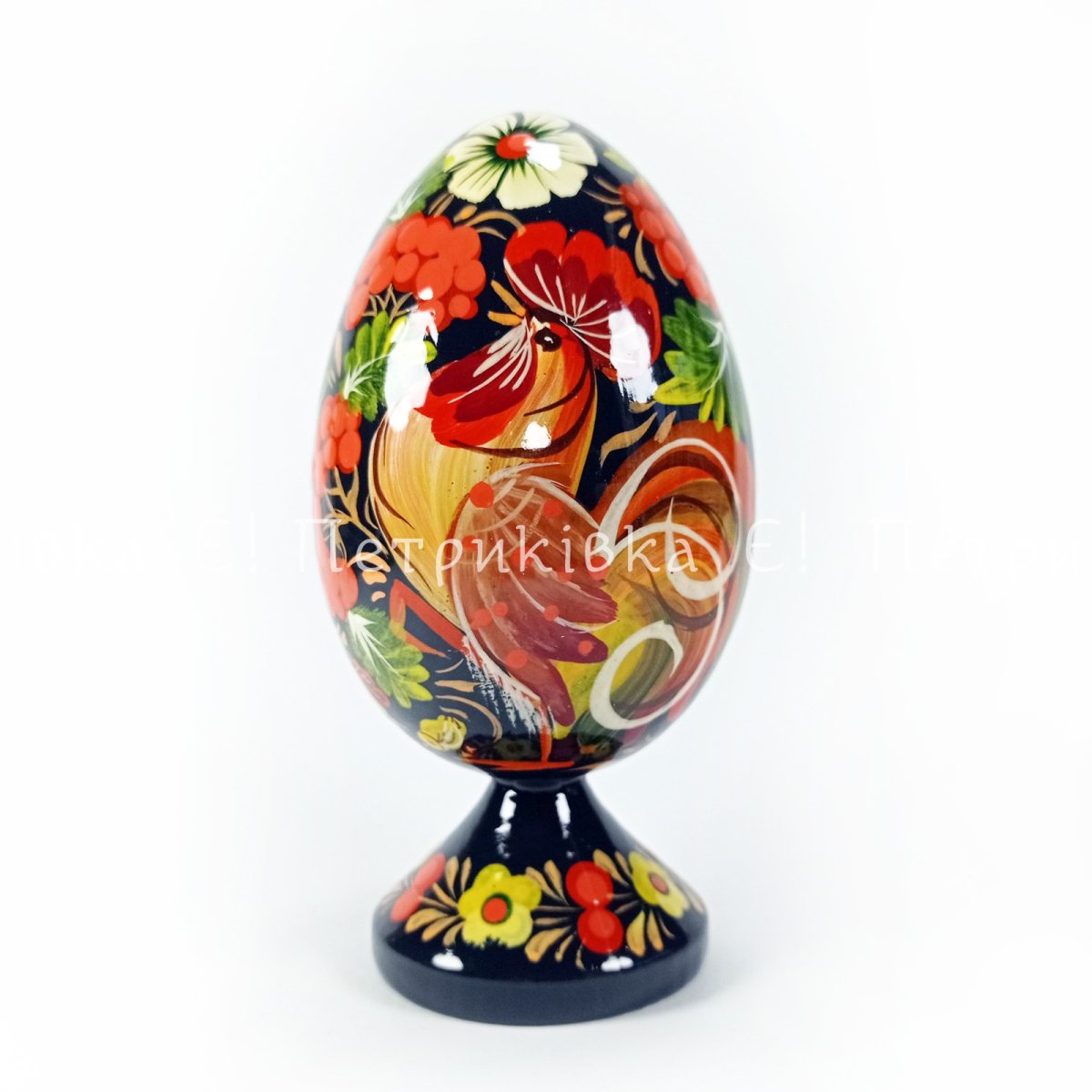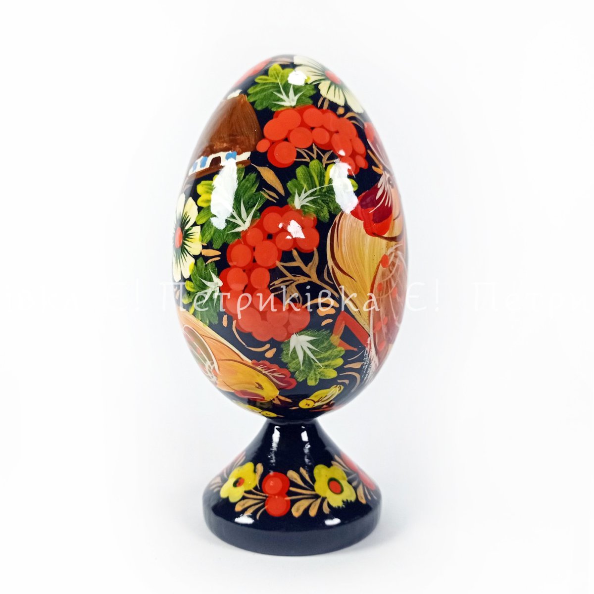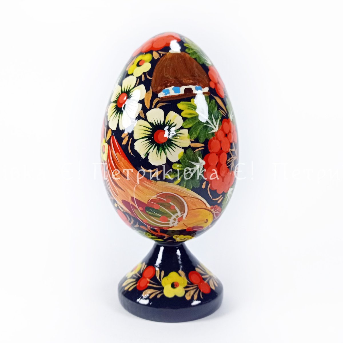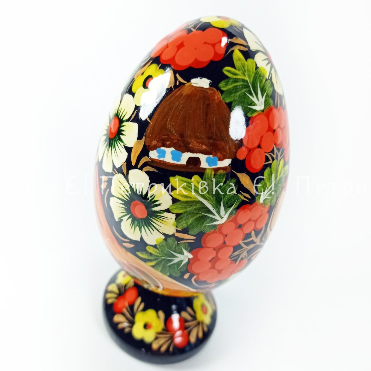 Яйце (висота 12 см) з Петриківським розписом на ніжці "Українське село"